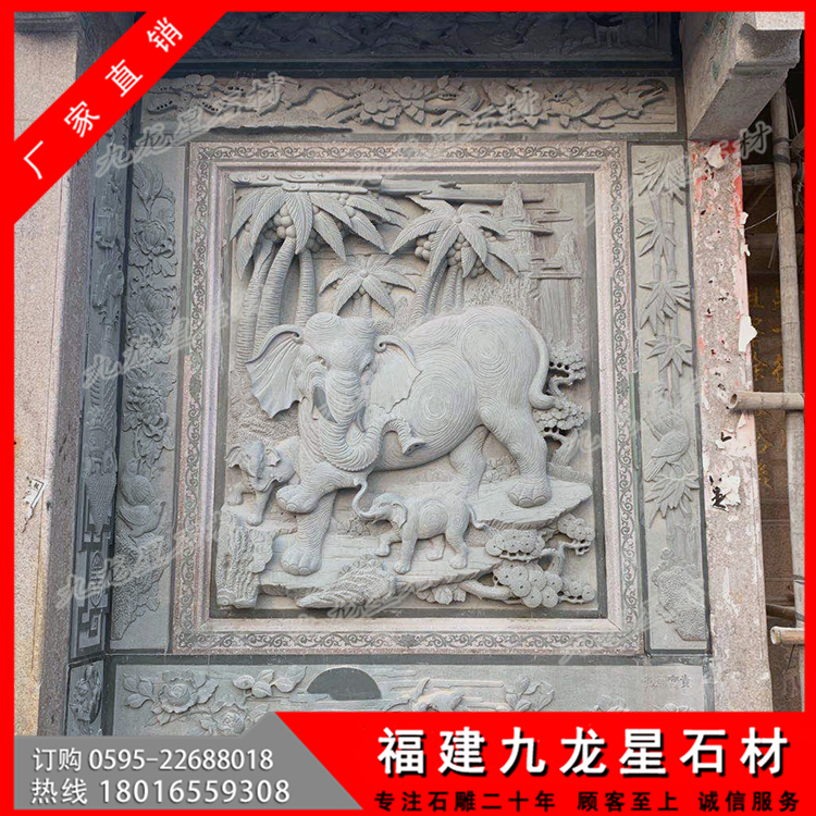 獅子浮雕,大象浮雕是廣東潮汕宗祠浮雕常見的雕刻圖案,其間還有其他寓意美好的圖案雕刻,浮雕的雕刻技藝和表現(xiàn)體裁與圓雕基本相同。