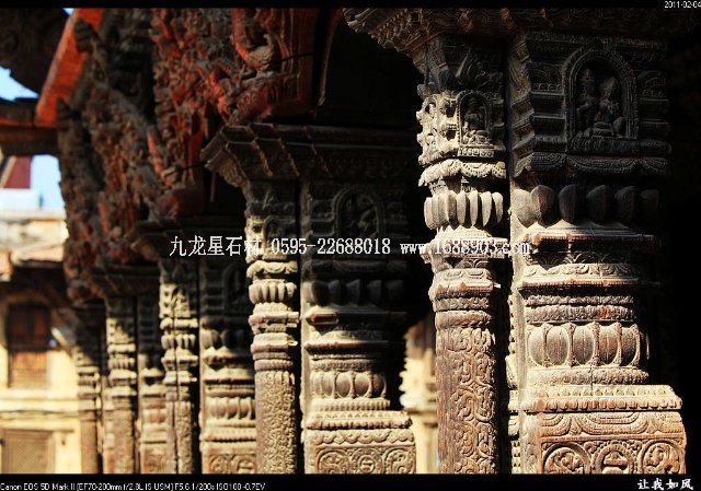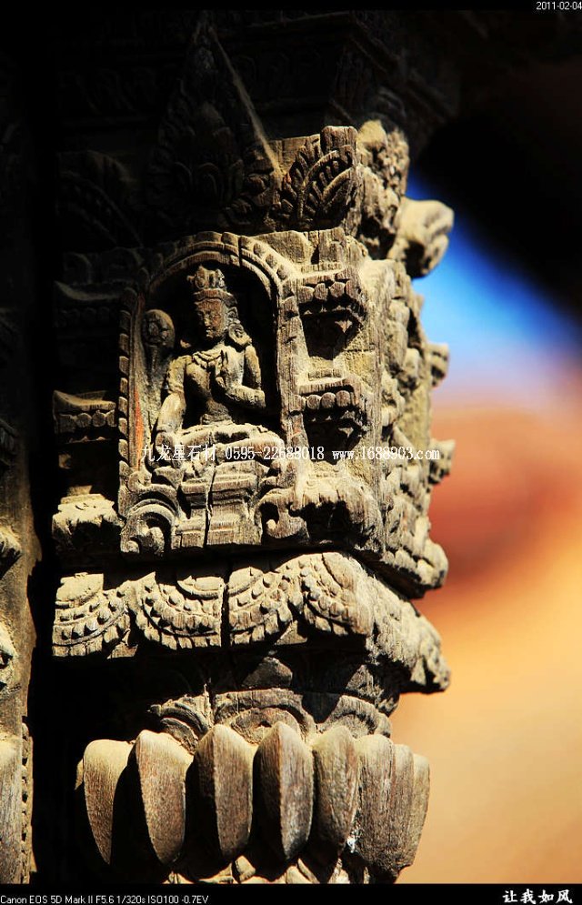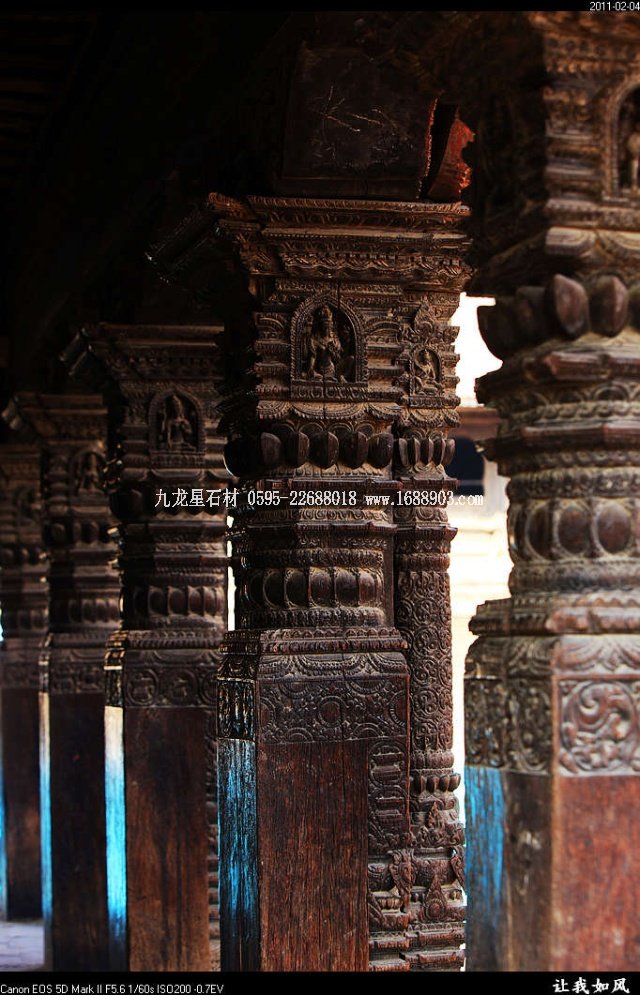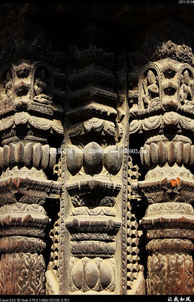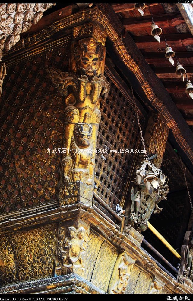 傳統(tǒng)的尼泊爾建筑,都使用雕刻木件,王宮和廟宇建筑自不必說(shuō),就是普通民居也是如此。使用雕刻木件處,主要是一些外露部分,如門(mén)、窗、廊柱、欄桿、屋頂及廊頂?shù)膿沃???梢哉f(shuō),凡是外露的部分,有木件就有雕刻,而且都是人工雕刻。