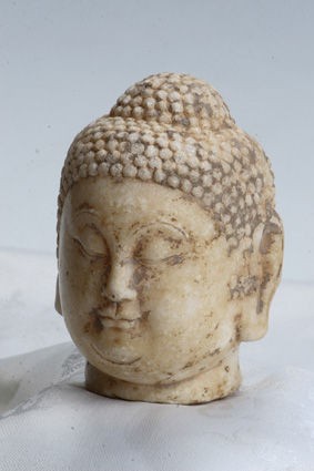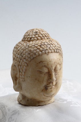 佛造像是佛教的載體,通過對佛造像年代、工藝、造型及風(fēng)格的研究,有助于認(rèn)識和了解古代雕刻藝術(shù)、文化史,古人的審美情趣以及古代的政治、經(jīng)濟和科技發(fā)展水平??v觀佛造像制作材料,有木制、泥塑制、金屬制、牙骨制、陶瓷制和石制。其中以石刻雕制的難度最大,因為它涉及石料的選擇、開采、運輸,體大量重,雕刻打磨實屬不易。唐代石刻佛造像是把人與精神、現(xiàn)實與理想完美地結(jié)合在一起的最佳表現(xiàn)形式。那么就請大家一同欣賞這尊唐代漢白玉佛首的神韻和藝術(shù)感染力以及由此帶給我們大家的宗教、歷史、文化等方面的信息吧。