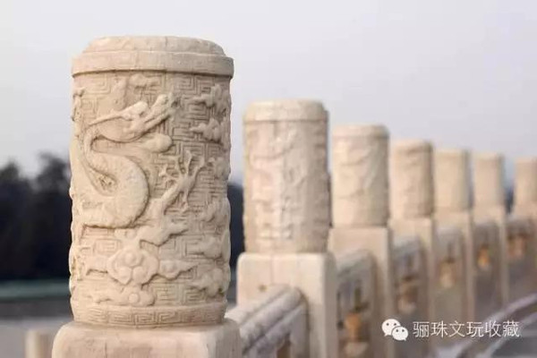 現(xiàn)在科技發(fā)達(dá)了,有些所謂的漢白玉也符合上述三條標(biāo)準(zhǔn),但它們也是假的,因?yàn)樗鼈兪怯檬蹓褐瞥鰜淼摹D怯衷撊绾舞b別呢?漢白玉的一大缺陷是打假的有利武器。觀察漢白玉的雕刻,就會發(fā)現(xiàn)一個特點(diǎn):不論是獅子、華表,還是望柱或欄桿,無論多么精美,都從來不會出現(xiàn)鏤空的紋飾。這并非漢白玉的雕刻師傅技不如人,而是由于其自身缺陷造成的。