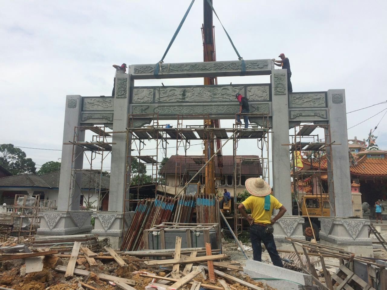 本公司的馬來西亞客戶石雕牌坊安裝中